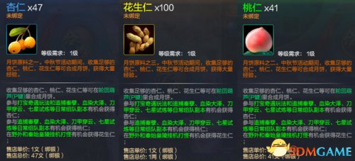 During the event, as long as the players participate in the daily team copies, Baoshi's adventure, hanging up and playing monsters, they can randomly obtain almonds, peach kernels, and peanut kernels.Players can make their own moon cakes by virtue of these materials.