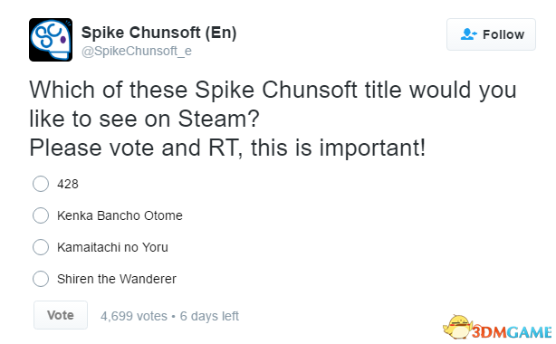 Spike Chunsoft has recently moved many handheld platforms to the PC platform, including projectile breaks and extreme off -out series.Now the company has issued a questionnaire on Twitter, asking fans to want to see which of the following four games.