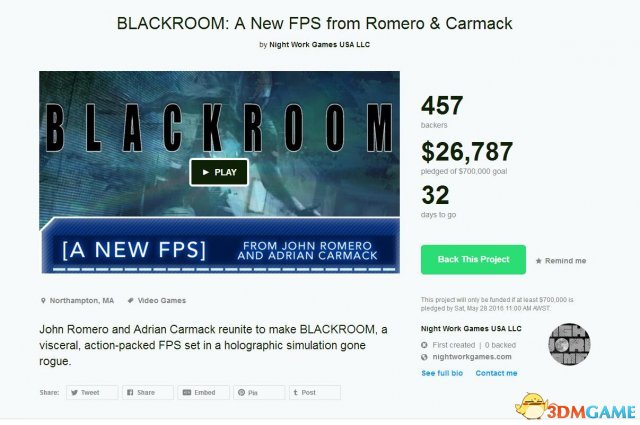 20 years ago, the ID Software created by the FPS pioneer of the game industry, John Romero, and Camar, can be regarded as the birthplace of the FPS computer game at that time.Can be called classics.Now the two are united again and opened a new crowdfunding project on Kickstarter called "Blackroom". This game is still the FPS game that the two are best at.