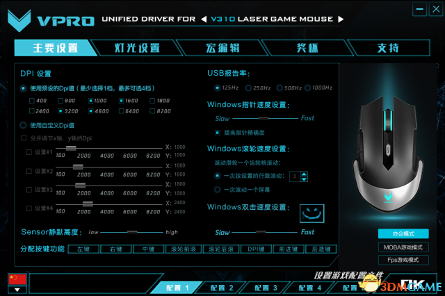 Friends who often play CS know that if they do not practice for a long time, they will be born soon.But a good mouse will make you handy in optimization and comfort.Leibo V310 gaming laser gaming mouse A9800 laser engine, 1,000 mouse returns per second, 8200DPI, 20 million Omron micro switch, and ultra -wear -resistant keys to trigger shell design have brought great advantages to game control.It is worth noting that the V310 also comes with the FPS game mode. It can switch the mode through the left and right buttons+the front -side keys. Xiaobian adjusts the resolution of the mouse into 400DPI for personal habits.The DPI is very low, because the higher the sensitivity, the more external factors such as our hands shake can interfere with the accuracy of the mouse.During the trial process, the keys have a good touch, and the non -slip effect is good.The mouse moves smoothly, stable and accurate during aiming, without the phenomenon of losing frames and hair drifting.