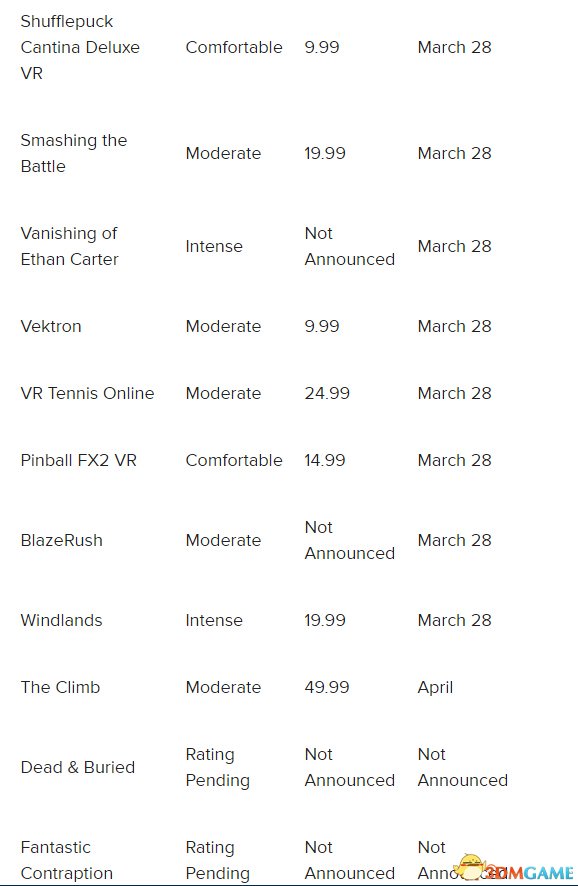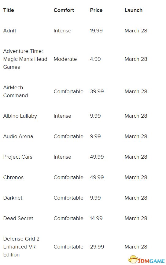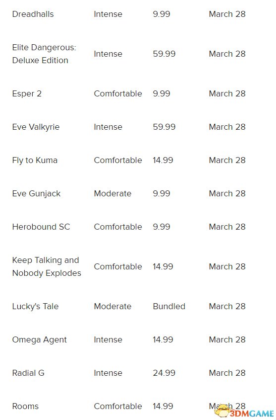 Oculus Rift will be listed on March 28, with a total of 30 games at the beginning.