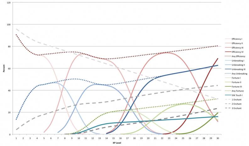 The first adjustment of value is based on the "enchantment ability" based on the enchanting object, depending on the materials and types of the item (see the table below).The stronger the more powerful materials, the worse.The game will randomly select a number between the half of the magic ability, and then add this number and 1 to the enchantment level.Therefore, the enchantment ability of bow, book and fishing rod is 1.This random number obey the triangle distribution (similar to the result of adding the results of the two dice), so the result is that the chance of the magic ability is far more than the probability of near the extreme value.