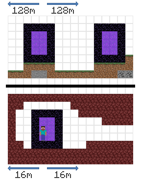 The portal of the main world can span a large distance.If there is only one portal within 128 meters in the "radius" in the lower boundary, the portal of the main world corresponds to the portal of 1024 meters of "radius" will be connected to this lower bound door unilaterally.