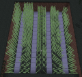 The following figure shows a 13 -by -9 farm that uses 61 sugar cane and 22 water blocks and surrounding aisles.