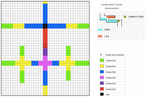 There is a simple design built in the area where the inner diameter is 18 × 18 (8*2+2), filling the channel with 8 water blocks (two blocks deep, the lower layer, and the upper layer is placed).Stop flowing at the edge of the central hole (placed a notice sign).